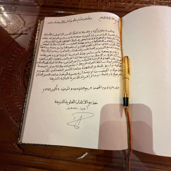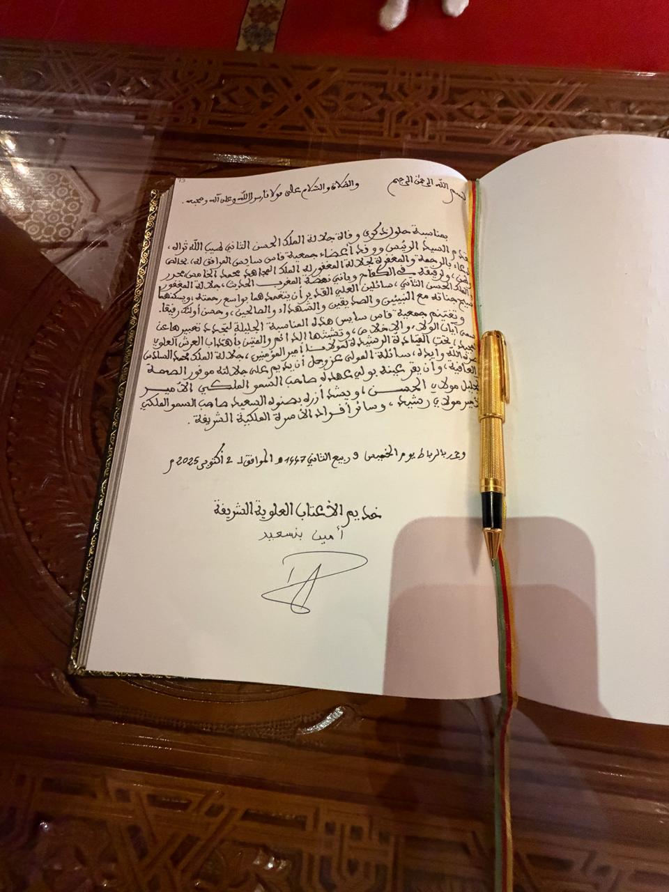 وخلال هذه الزيارة، وقع السيد أمين بنسعيد على نص كلمة باسم الجمعية في الكتاب الذهبي للضريح.